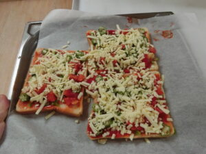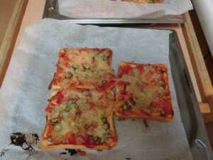 こどもたちが夏野菜のピザトーストを作って食べました。
